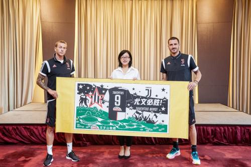 送战袍更送祝福,百岁山中国风“剪纸”礼物预言“尤文必胜”,尤文球员纷纷在定制球衣上签名、合影留念,看得出这份“大礼”深得斑马军团喜爱!