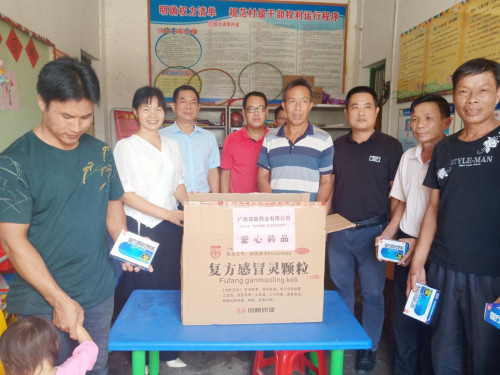 鉴于即将进入流感高发季,双蚁药业特地给读村村委和贫困户捐赠一批辛凉解表、清热解毒的爱心感冒药品——双蚁®复方感冒灵颗粒,希望他们安然度过流感季。