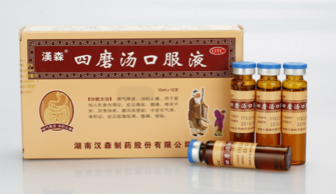 四磨汤口服液由湖南汉森制药股份有限公司生产的专利产品,具有快速排出胃肠积滞,全面增强调理消化机能的作用。最早来源于宋代《济生方》,正式成方于明代《痘疹金镜录》,四磨汤由木香、枳壳、槟榔、乌药四味中药材组成,临床主要用于婴幼儿乳食内滞证,症见腹胀、腹痛、啼哭不安、厌食纳差、腹泻或便秘;中老年气滞、食积症,症见脘腹胀满、腹痛、便秘;对于消化不良、腹胀、嗳气反酸、便秘、非感染腹泻(如肠易激综合征腹泻)等均具有较好疗效,在消化系统疾病中广为使用,临床医院报道论文600多篇,是治疗多种胃肠功能障碍疾病的特效中成药,被国家纳入基础研究973科研项目。